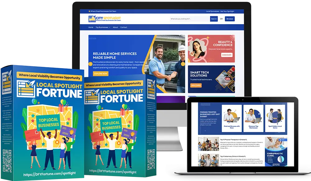 Local Spotlight Fortune is a done-for-you website system that lets you launch a local “Top Business List” site in any city. You can create posts in one click, use the built-in GPT to find real businesses to feature, and earn from listing spots, ad placements, and upsell marketing services.