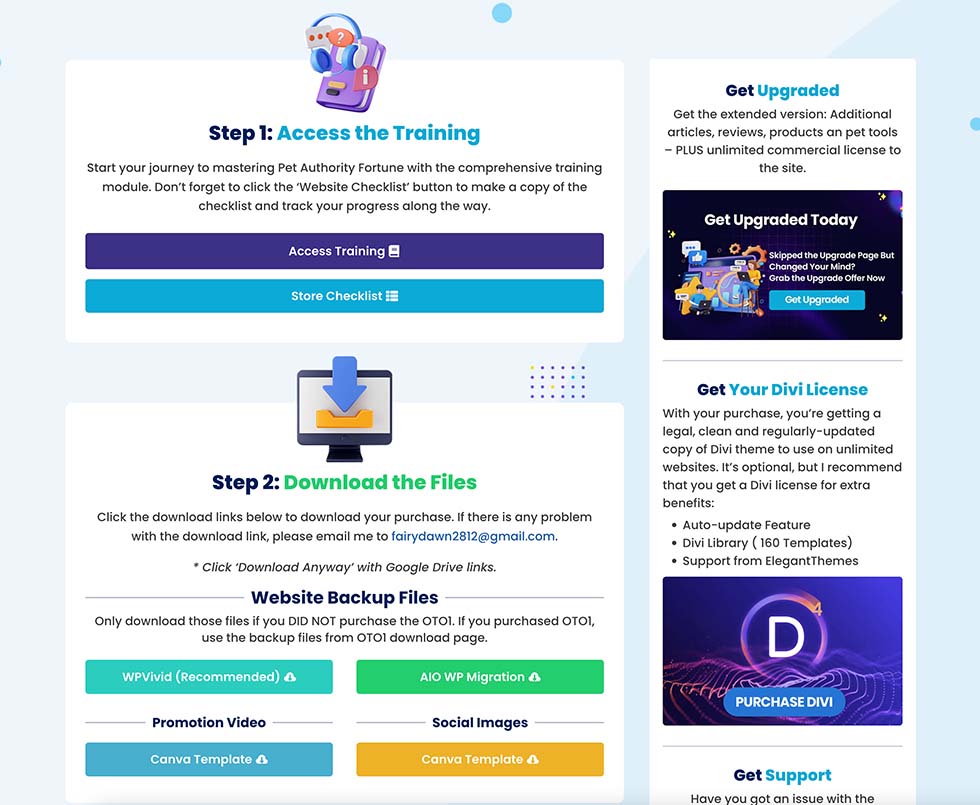 On the download page, located just below the training link, you’ll find all the necessary download and access links for the files and materials included in Authority Site Fortune. After you’ve navigated through the training and have a solid understanding of the system, you can return to this page to download your files. This ensures you have everything you need to successfully launch and manage your website.