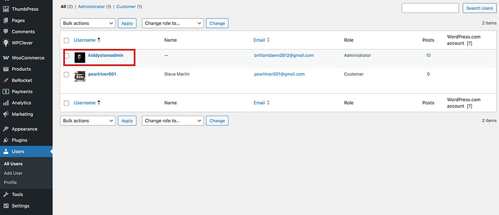 – Go to ‘Users’ and click ‘Edit’ on the ‘kiddystoreadmin’ username.