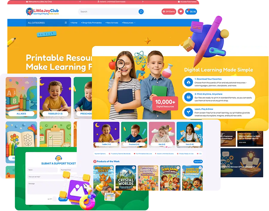 Skip the struggle and start selling instantly with your own DFY kids printable store.