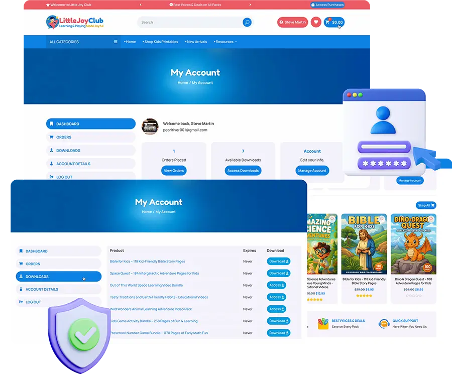 With just a few clicks, you’ll have a complete, beautifully designed WordPress store preloaded with 10,000+ pieces of kids educational and fun printables ready to sell (over 60 product bundles). No design or tech skills needed. Everything is included and ready to launch right out of the box.
